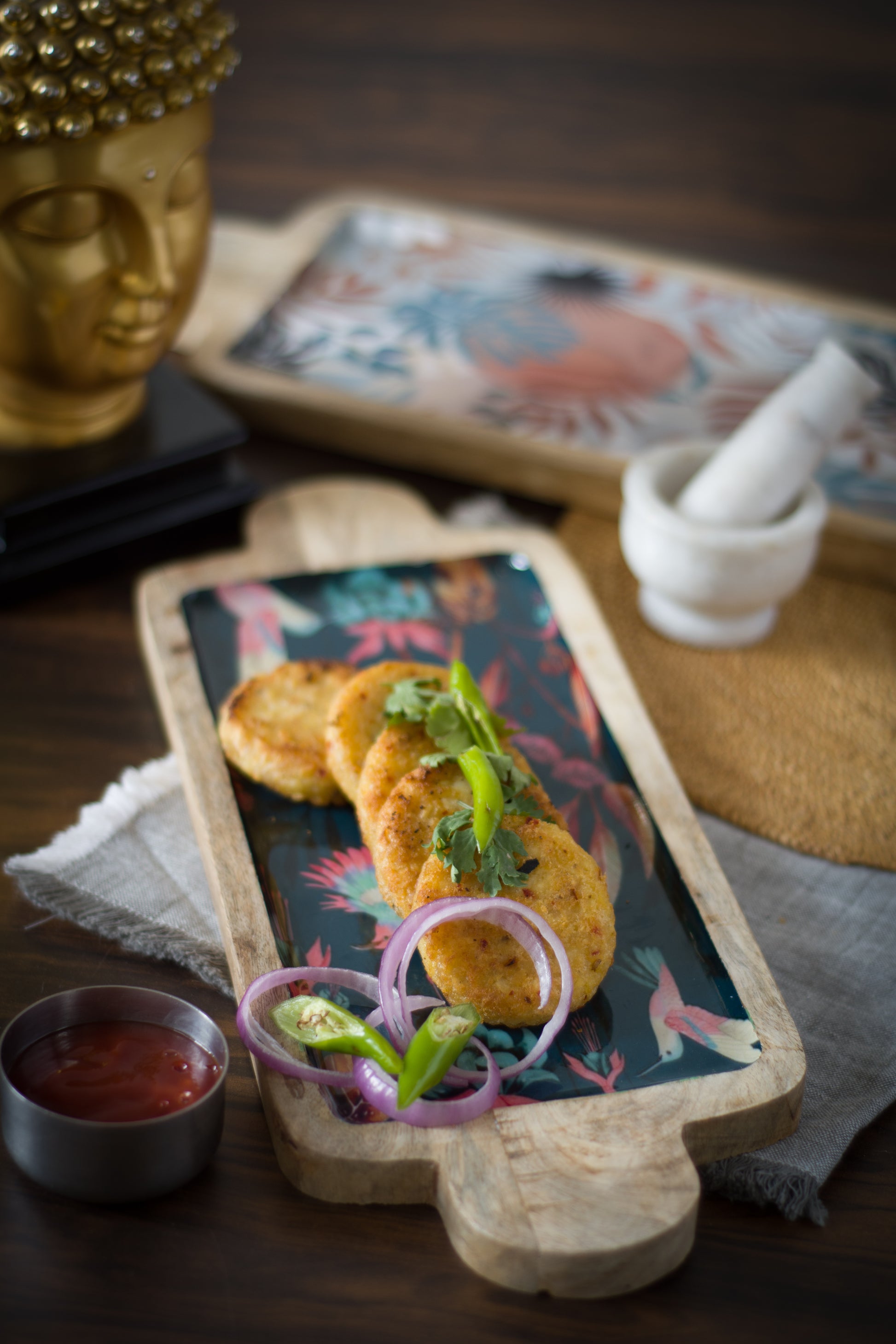 Serving Platter by The Modern Storey. This blue rectangle-shaped platter, crafted from mango wood, features a vibrant orange and pink bird print. Elevate your serving experience with a touch of nature-inspired elegance and modern design.