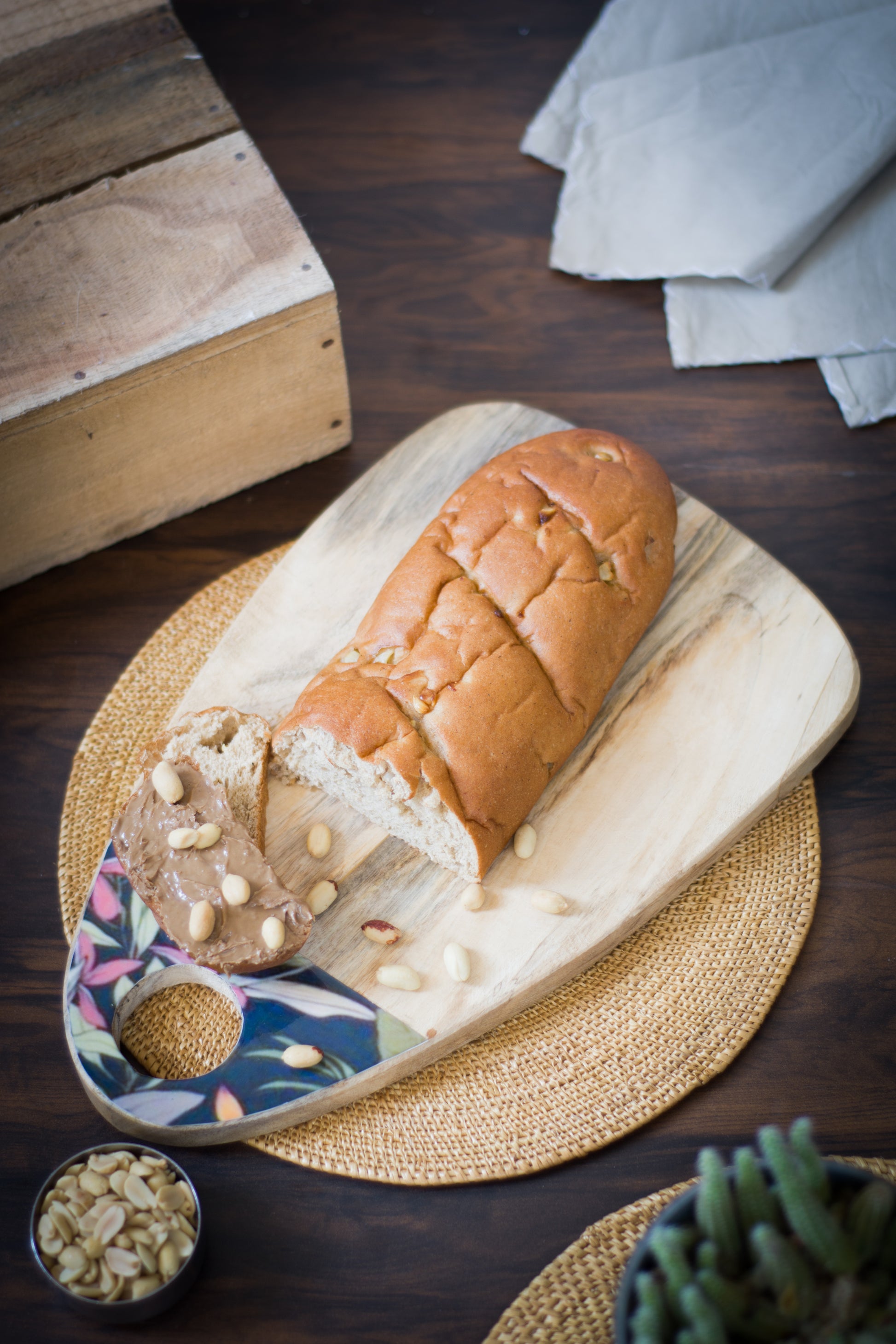 Serving Platter by The Modern Storey. This brown triangular platter, with a sturdy handle, features a stylish black leaf tropical placement print. Elevate your serving experience with a touch of modern sophistication and natural charm.