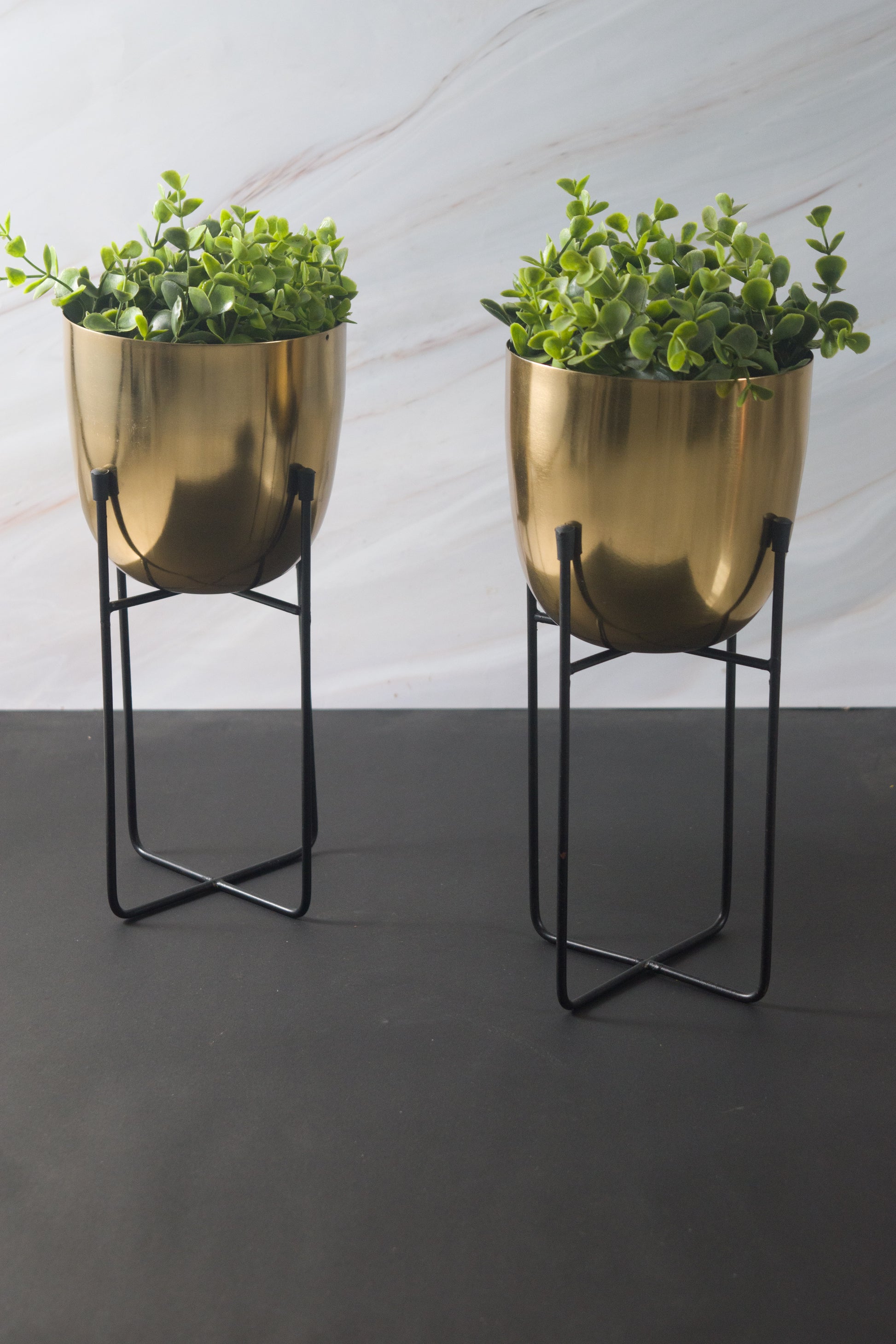 Planter Set by The Modern Storey. Elevate your space with this stylish set of two gold iron planters, promoting wellness and relaxation through greenery. Adding bundles of charm, these modern planters are a delightful addition to your home decor.
