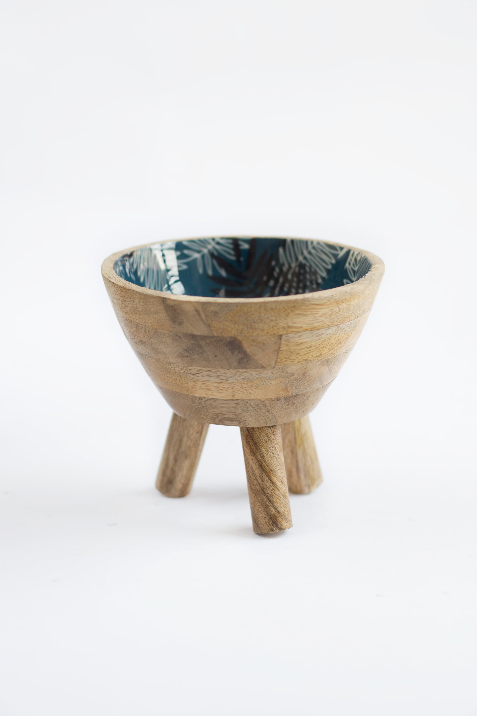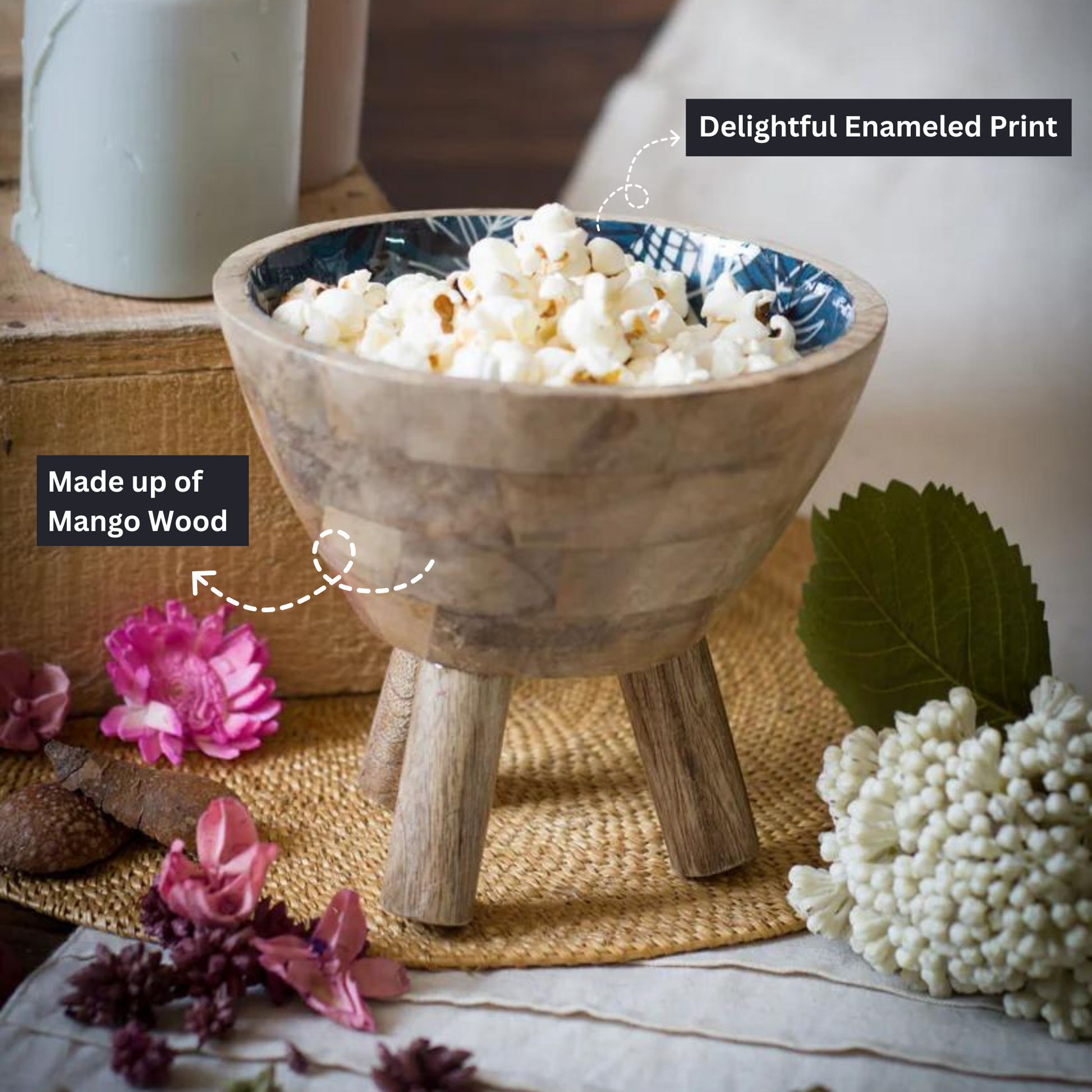 Wooden Salad Bowl by The Modern Storey. Enhance your dining experience with this handcrafted navy blue bowl, perfect for serving snacks and salads. Crafted from natural wood, its enameled print adds a playful, earthy touch. Ideal for everyday use or displaying your favorite collectibles.