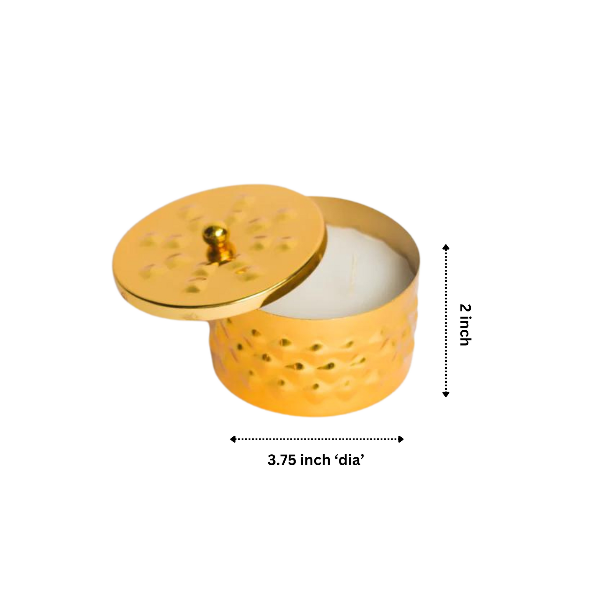 Candle by The Modern Storey. Elevate your home decor with the refreshing scent of lemongrass in this beautiful iron candle. The rose gold-tone design, complete with a lid, adds a touch of sophistication to your table decor, making it an ideal gift for festive occasions.
