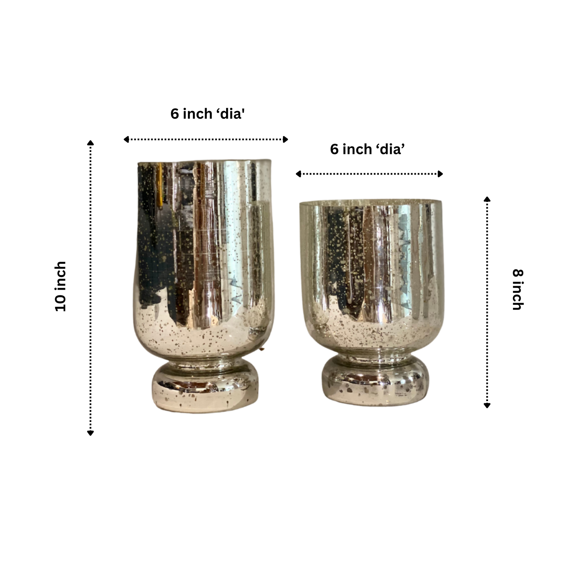 Components: Set of 2Composition: GlassColor: SilverDimensions: Dia x H (in inches):Big Vase: 6 x 10Small Vase: 6 x 8Weight (in gms):Big Vase: 977Small Vase: 912Note: Only 2 piece vase shown in the image is being sold