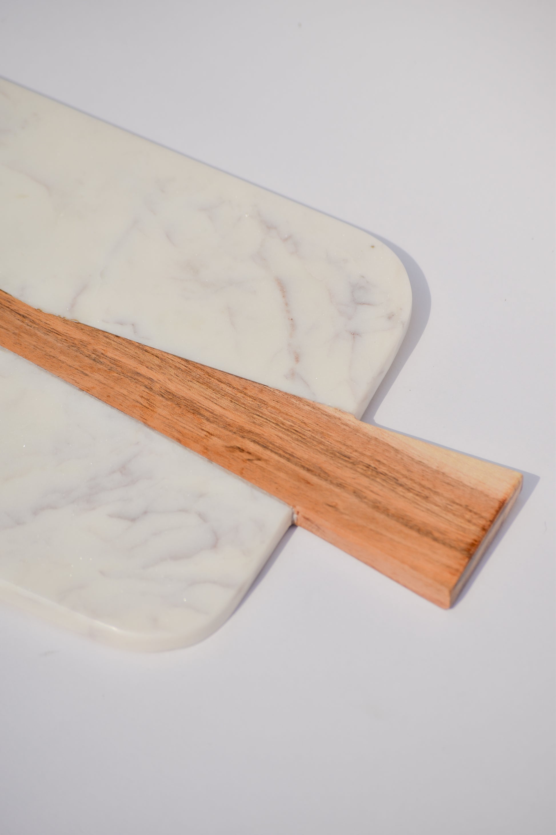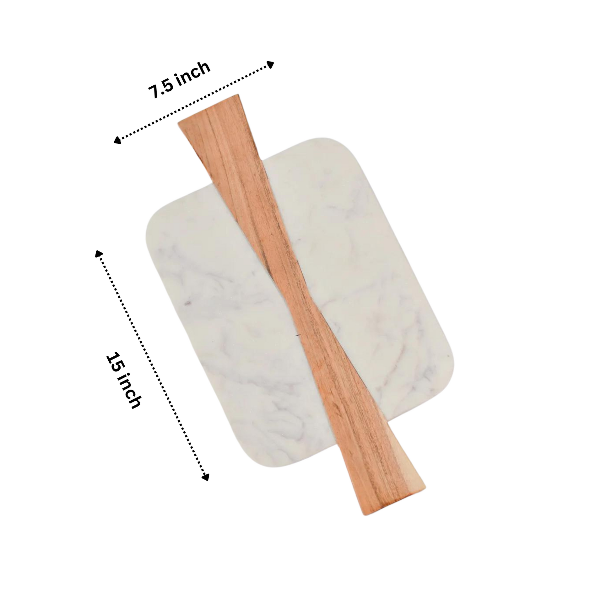 Tray Platter by The Modern Storey. Elevate your dining with this exotic white platter, perfect for parties, simple meals, and small get-togethers. Skillfully crafted from purple-white banswara marble and mango wood, it adds a touch of sophistication to every occasion.
